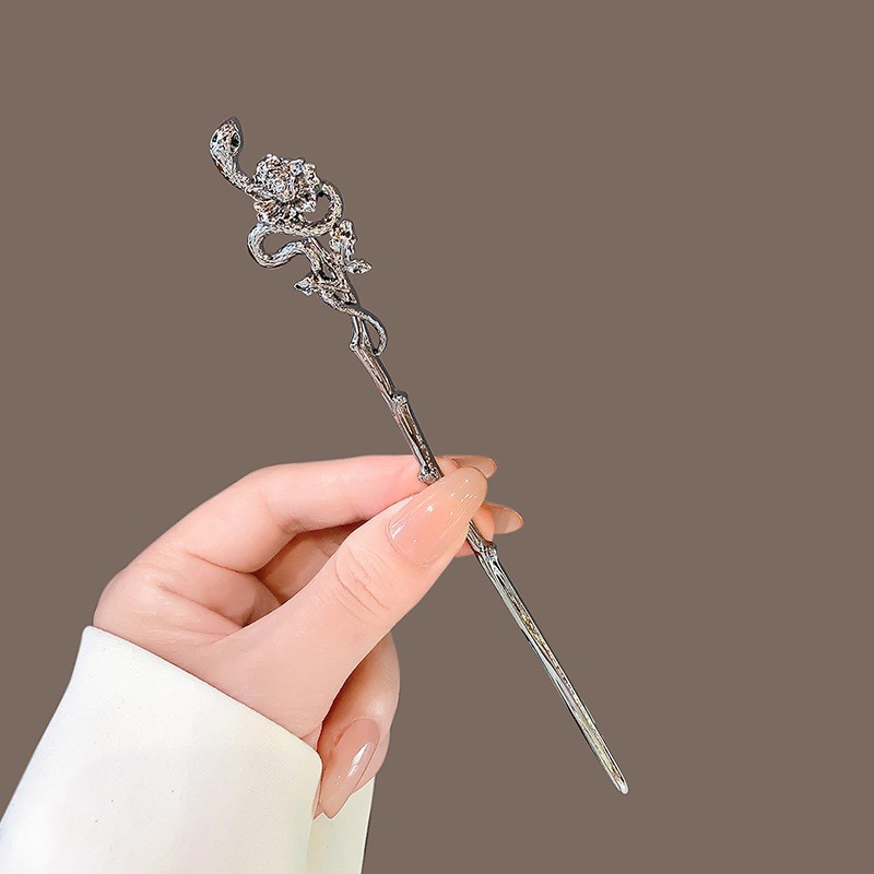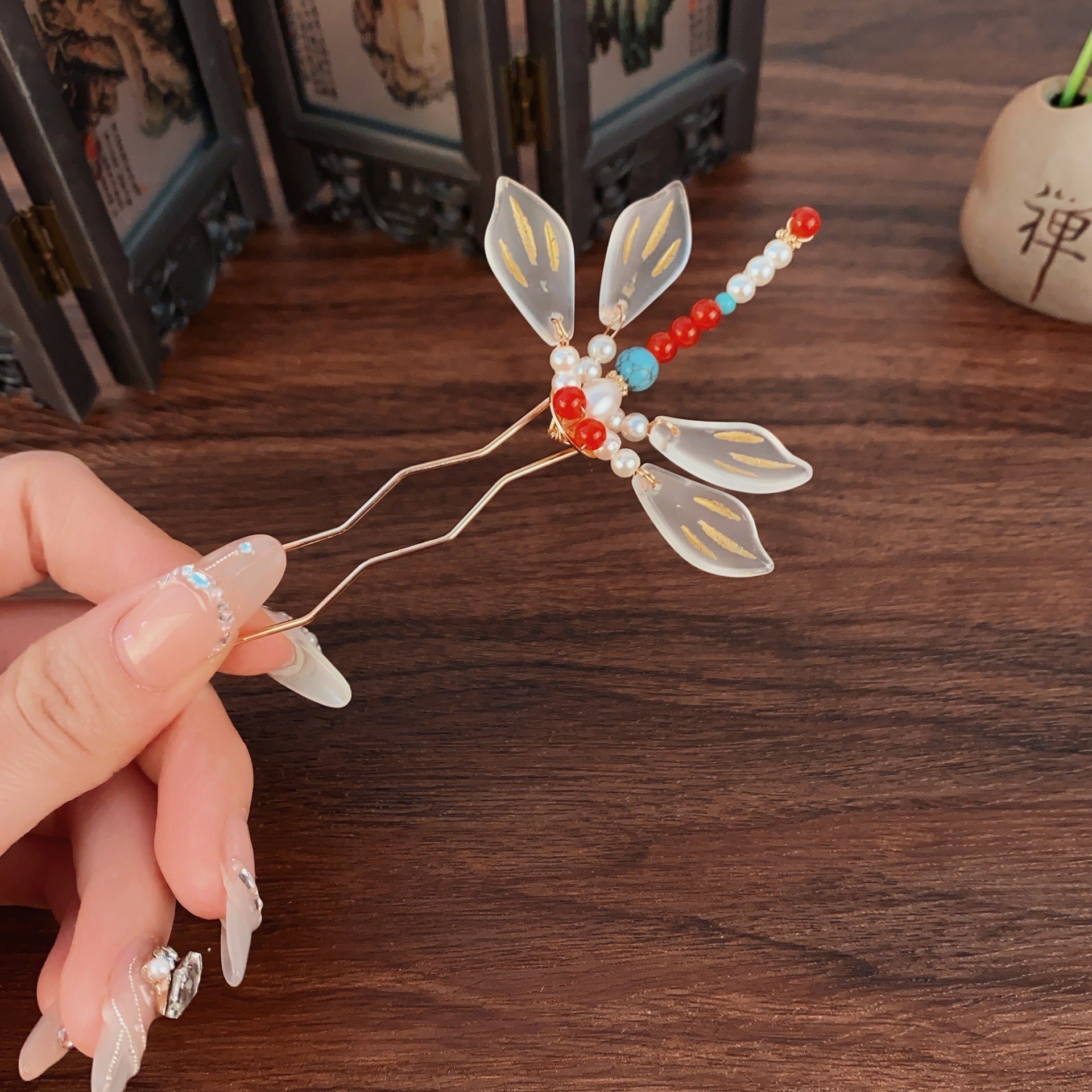 新中国式の古風は緑松石トンボのかんざしの女性の小さい大衆の創意の設計のu型のかんざしの復古の百合の髪飾りをまねます。