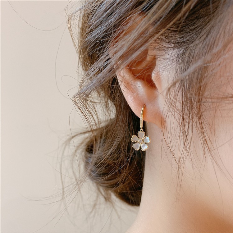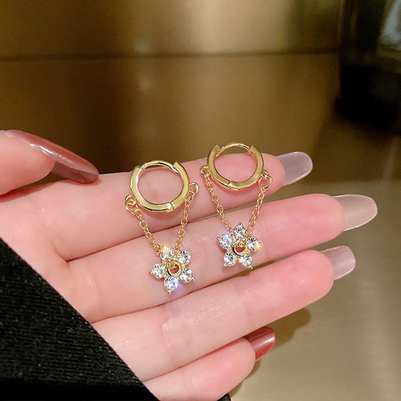 韓国版のファッションチェーンの水晶のジルコンの花のイヤリングの女性の軽い贅沢な気質の冷たい風のピアスの花びらのイヤリング