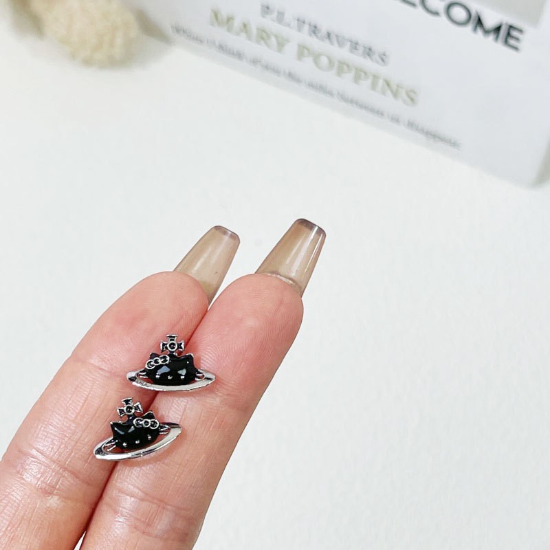 黒の甘いクールな立体の星の猫のピアスの女性の大衆のデザイン感のファッションの精巧な個性の百合のイヤリングの装飾