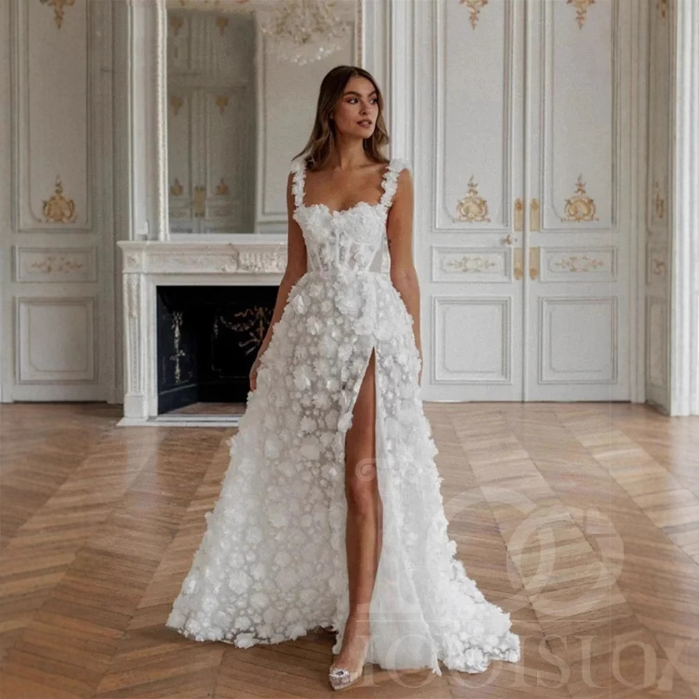 クロスボーダーヨーロッパとアメリカのサスペンダーライトウェディングドレスホワイトデザインライトラグジュアリースリットスリムフィットライトガーゼ婚約証明書ドレス女性用