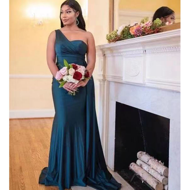 欧米の外国貿易のタキシードのアマゾンwishのセクシーな速売のサテンのシンプルな魚の尾のシングル肩の胸のドレスの女性