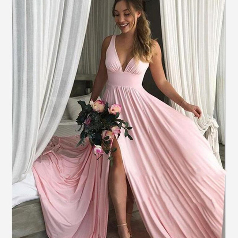 ストラップの露背シフォンのワンピースの長いピンクのタキシードの司会者の晩餐の気質のドレスの花嫁のドレス
