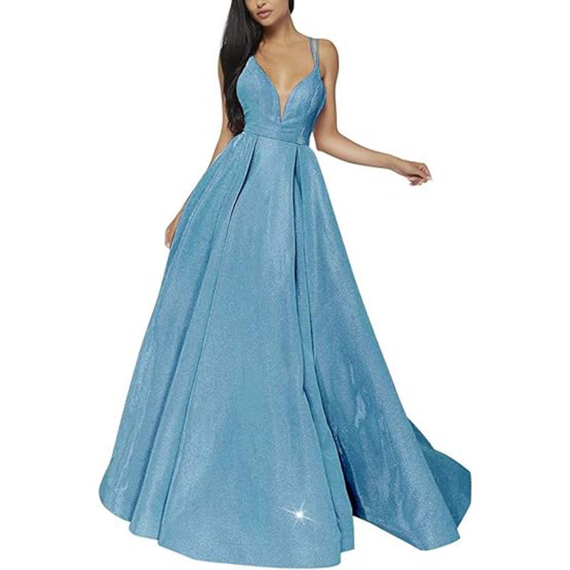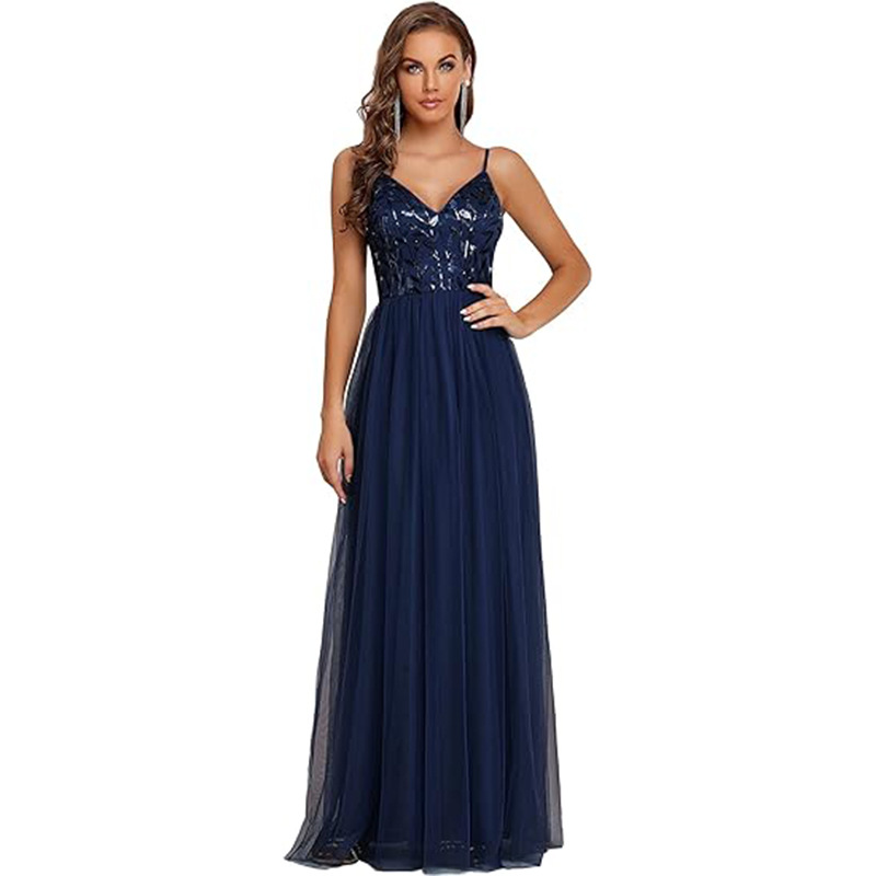 アマゾン国際駅ebay宴会ドレスvネックスパンコール2024ロングストラップパーティー花嫁ドレス女