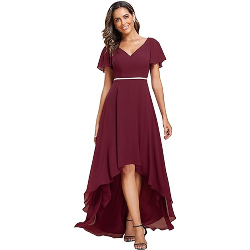 欧米の新型の大きいサイズのシフォンのvネックの修身の夜のドレスの花嫁の服の甘い結婚式の宴会は合唱のドレスを演出します。
