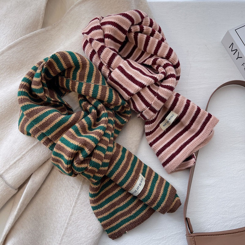 女性用模造カシミアストライプニットスカーフ2025冬の新しいハイエンド韓国スタイル多用途カップル暖かいスカーフ男性用