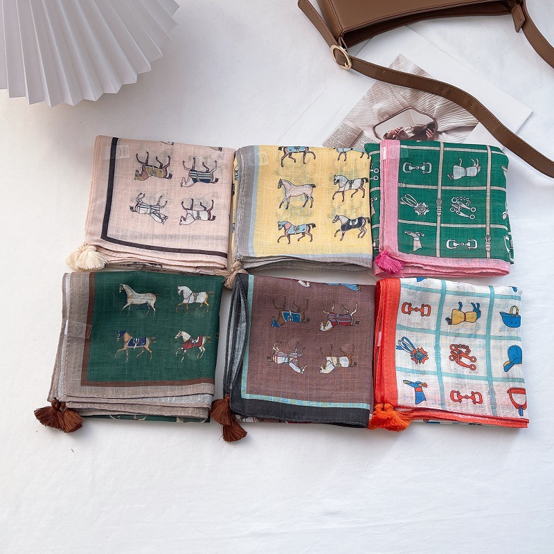 綿麻の手触りが柔らかい保温マフラー女性秋冬水墨画ガーゼ薄手海辺シルクタオル日焼け止めストール春夏