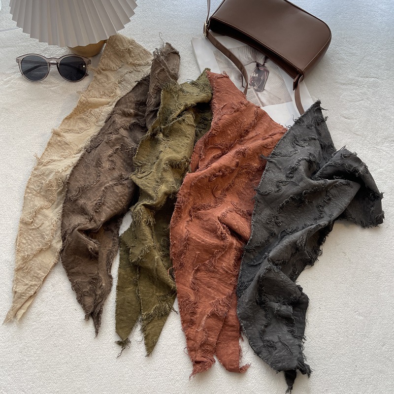 亜麻色レース綿麻薄手マフラー女性冬ストール春秋洋気ファッションマフラー純色ガーゼ