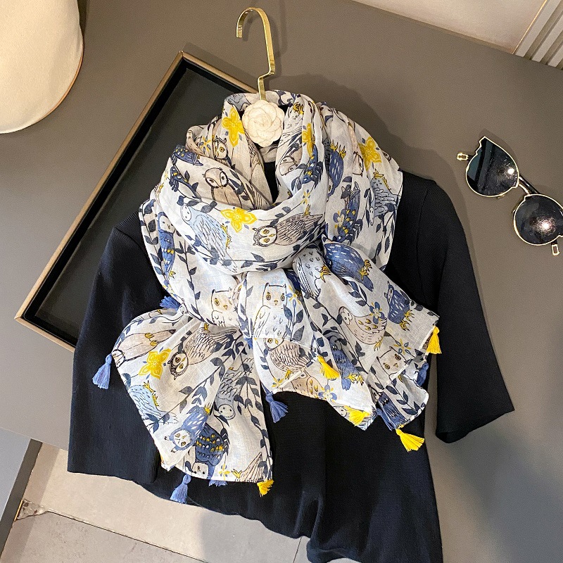 2024夏の新型旅行写真日焼け止め綿麻ストール女性かわいいフクロウマフラー海辺日よけガーゼタオル