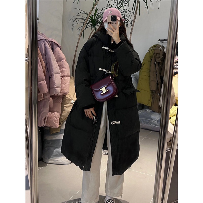 ダウンジャケットの女性の中の長さの2023の新型の韓国版は膝の牛の角を過ぎてボタンを掛けてゆったりしています。