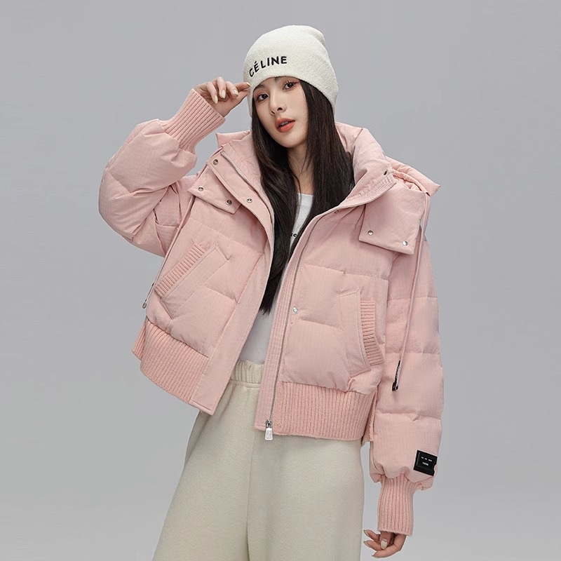 ダウンジャケットの女性のハイエンドの帽子は2024冬の新しいファッションの韓国版がやせているメリヤスのつなぎ合わせの厚い白鴨の羽毛のコートです。