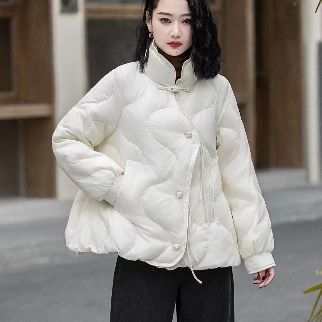ダウンジャケット女性の冬の新型文芸復古シンプルなスタンドカラー中国式バックル