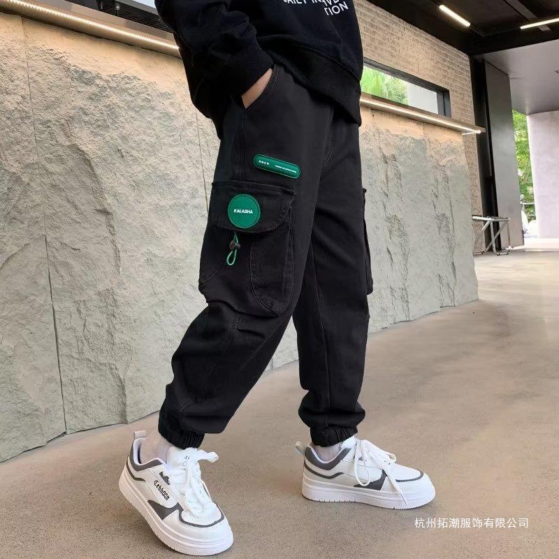 男児ズボン春秋金2025新型大童春秋装子供工装ズボンゆるい男の子運動ズボン