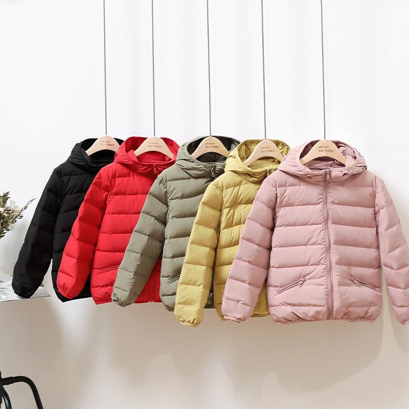 子供の薄っぺらなダウンジャケットのショートタイプ2023秋冬男の子の女の子の中の大きい子供の韓国版の帽子の子供服のコートの在庫一掃