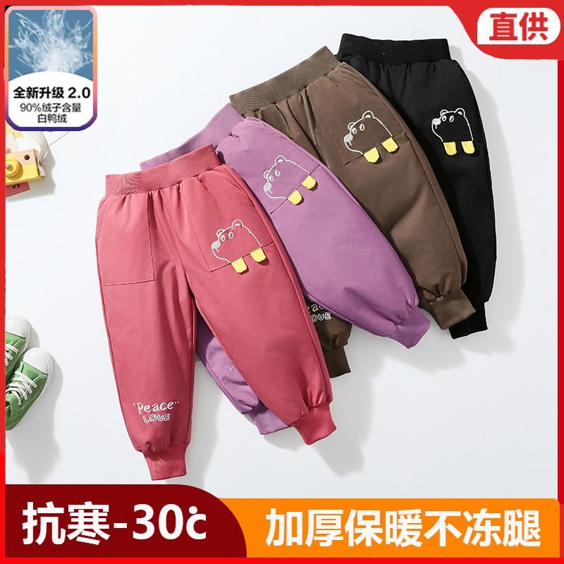 工場卸売り児童ダウンパンツ男女児童冬保温厚手防風洋気白鴨パイル長ジャカードパンツ