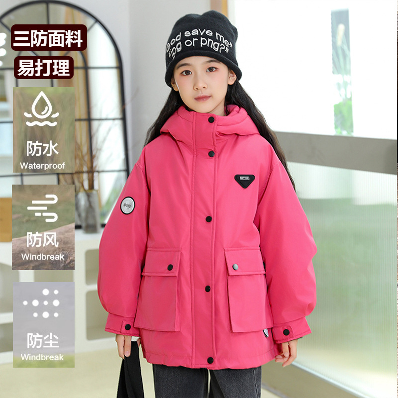 子供用ダウンジャケット男女子供服秋冬新作韓国版軽薄新国標90パイル厚手フード付き洋気コート