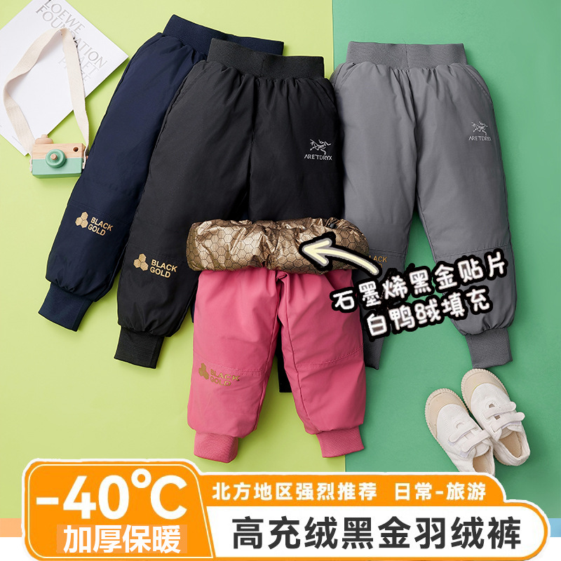 子供用ダウンパンツ男の子用2025冬新作女の子用ブラックゴールド90ホワイトダックダウン厚手暖かいパンツアウター用