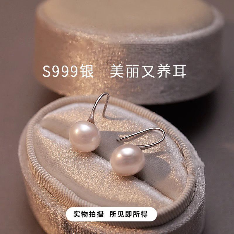 S999足銀ピアス女性真珠イヤリングピアス2025新型爆金小衆デザイン高級感春夏耳飾り