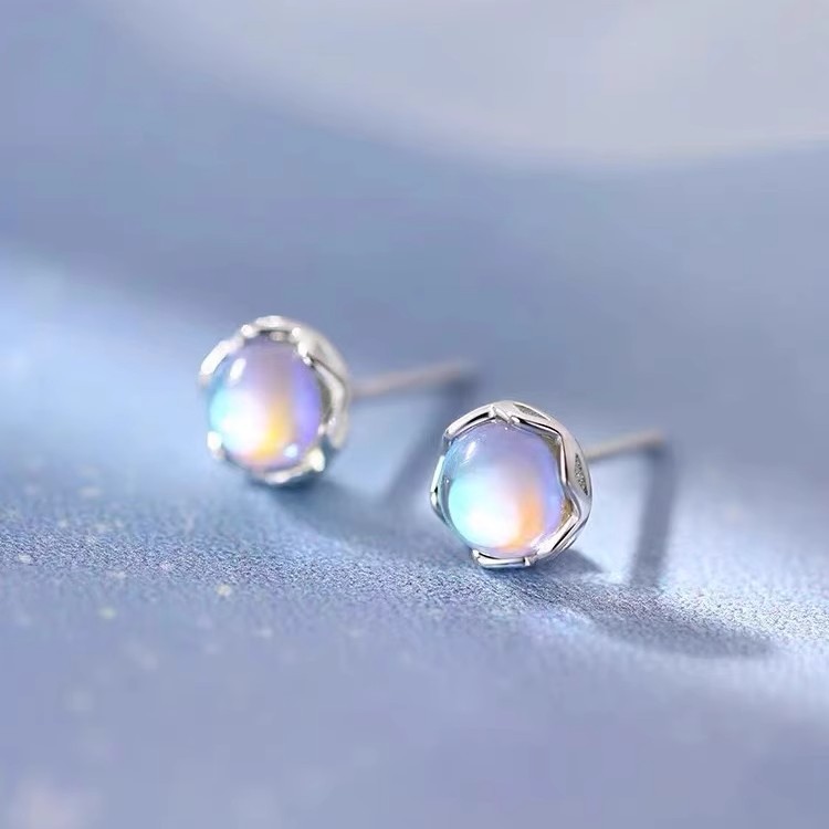 999 スターリングシルバームーンストーンイヤリング 2025 新しいホットスタイルライト高級イヤリングニッチ女性のハイエンドイヤリング