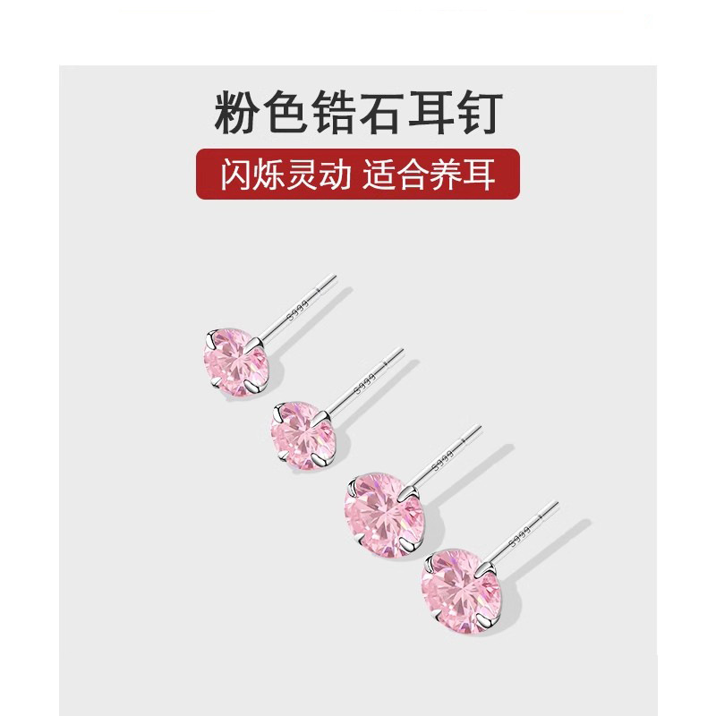 999 スターリングシルバー ラブ ピンク ダイヤモンド イヤリング 女性用、ピアス、小さなイヤリング、就寝時に外す必要がなく、ファッショナブルで軽い高級イヤリング