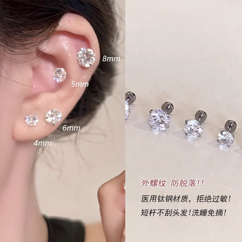 女性用医療用チタン鋼ダイヤモンドイヤリング、男性用ハイエンド耳ピアス、フラットイヤリング、ネジバックルイヤリング