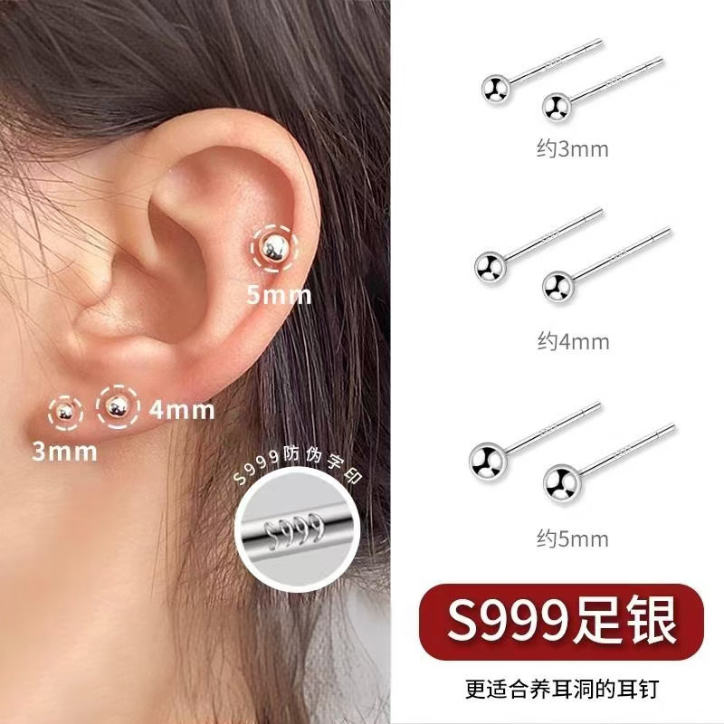 999 スターリングシルバーの女性用耳ピアス、就寝時に外す必要がなく、詰まり防止ニードルイヤースティック、高級耳骨ネイル、シンプルなイヤリングとイヤリング