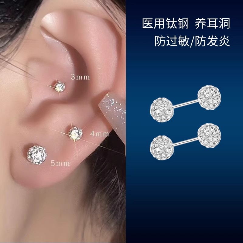 医療用 f136 チタン合金ダイヤモンドイヤリング女性用ハイエンド耳ピアスイヤリングプラグイン耳骨ネイルスーパーフラッシュイヤリング