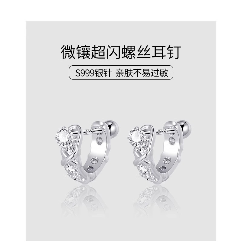 999 シルバー針ダイヤモンドイヤリング女性のニッチデザインハイエンド耳骨ネイル耳ピアスネジツイストバックルイヤリング