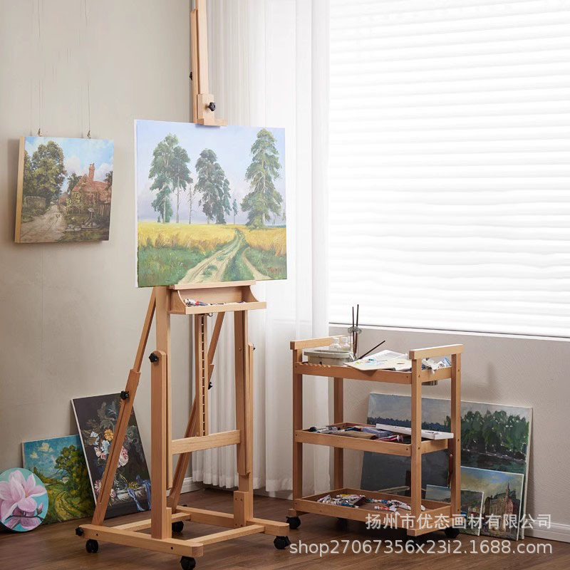 実木五層油絵車スケッチ美術生専用絵画スタジオ美術用品車移動カート