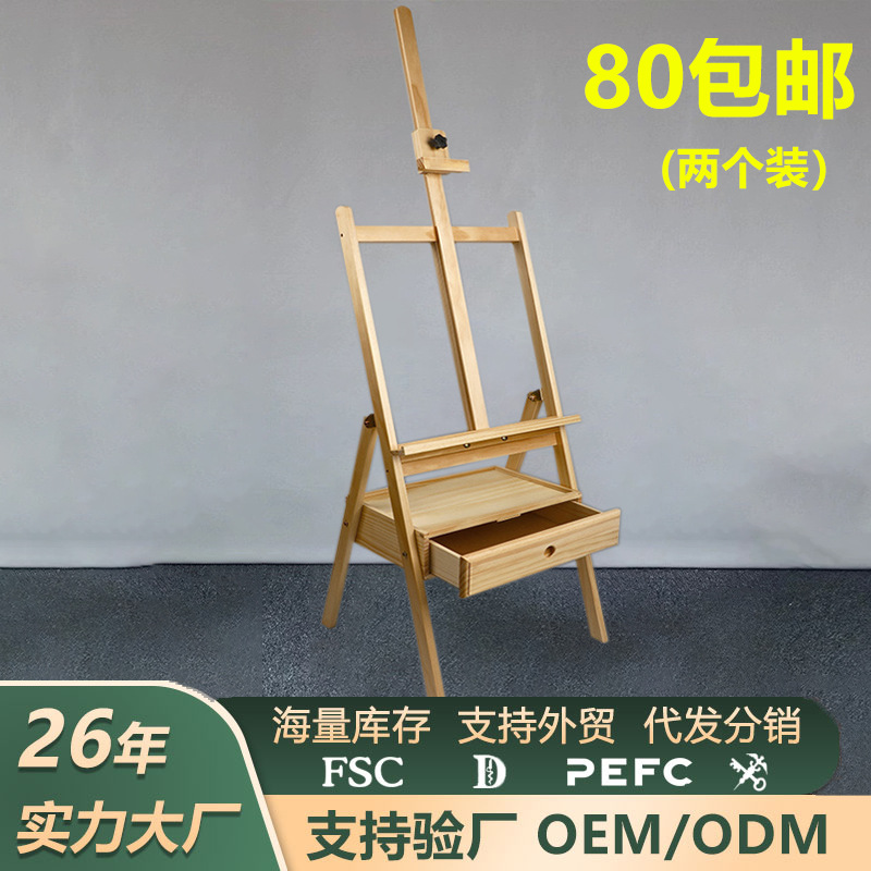 実木引き出し式画架美術生木架画板棚付き木製展示棚画板画架