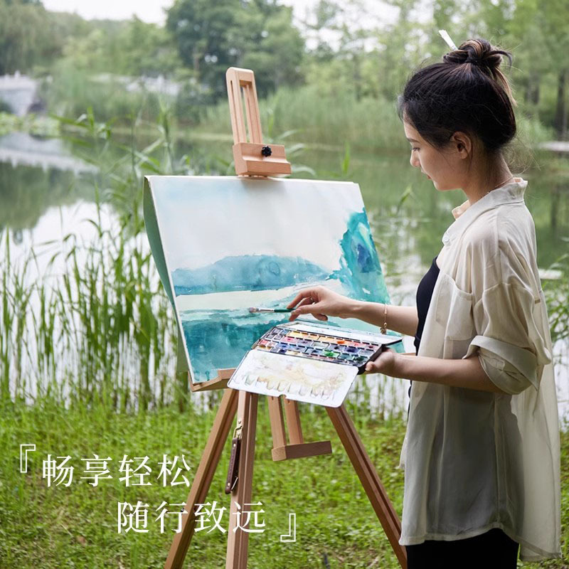 画架デスクトップ美術生専用ケヤキ画箱スケッチ写生画架実木折り畳み携帯油絵画架