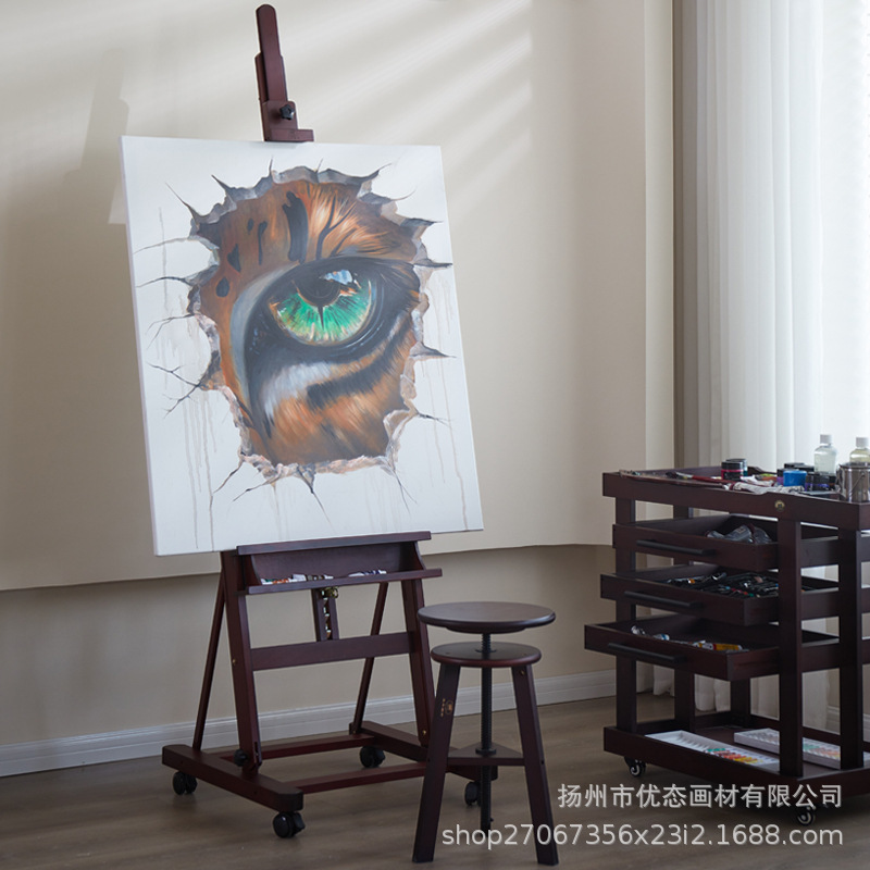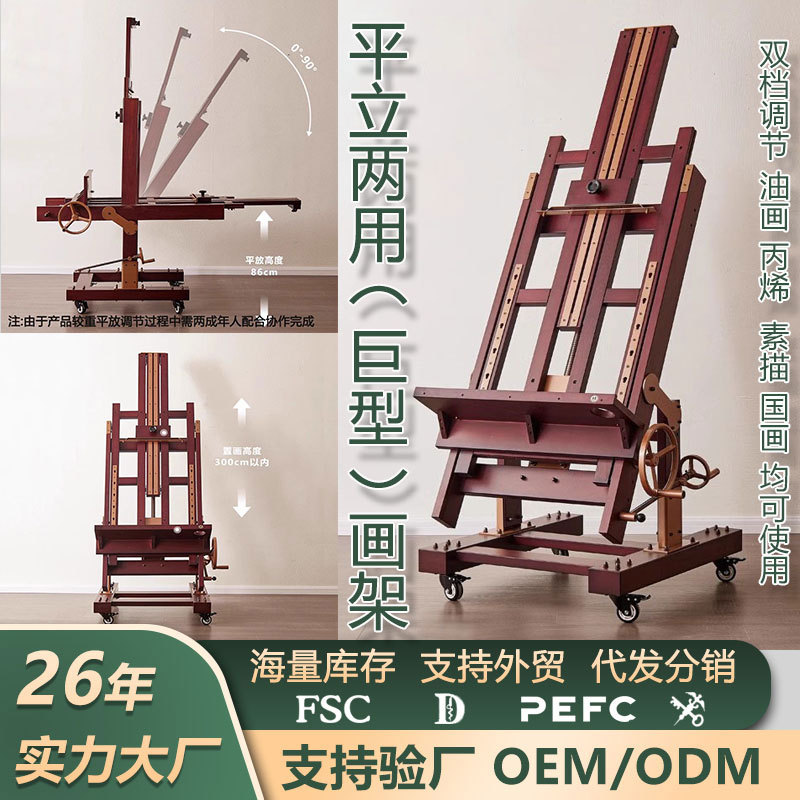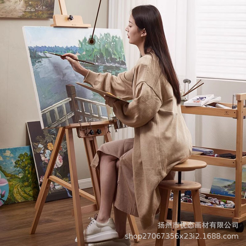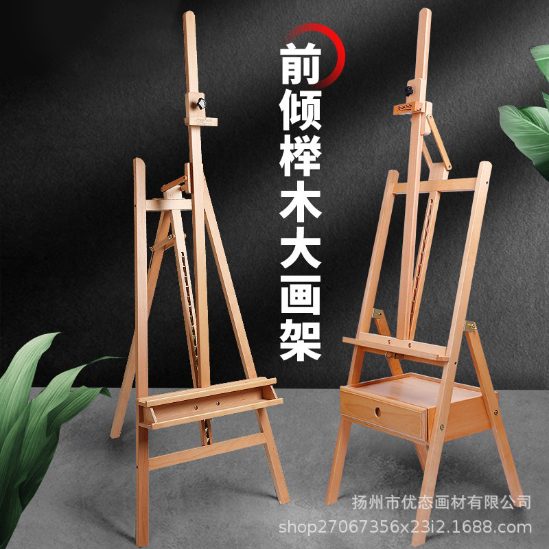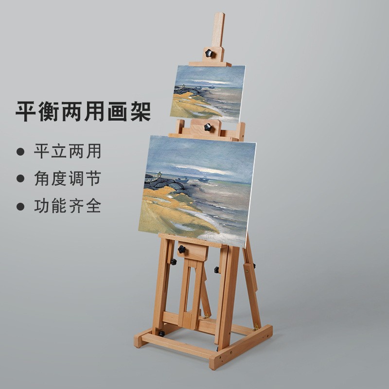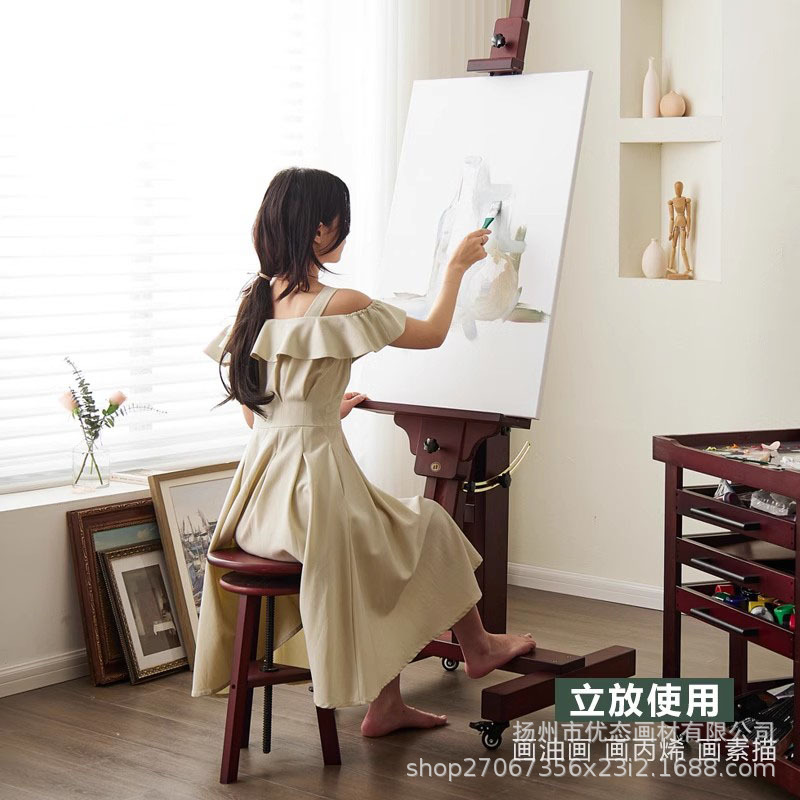 美術生専用実木油画架床式アクリル水彩国画平立両用多機能レトロ画架