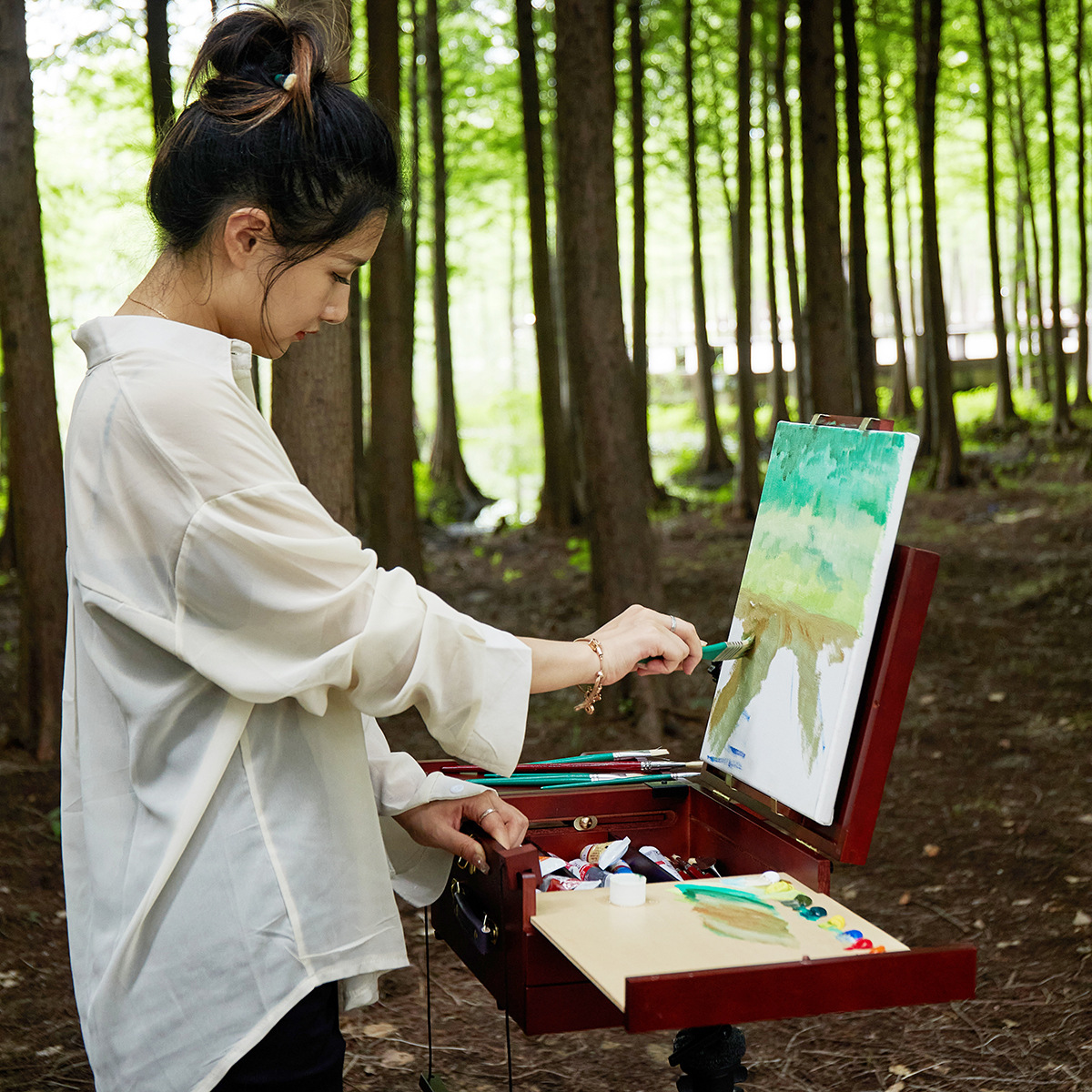 レトロイタリア多機能油絵箱携帯型屋外写生折り畳み油絵フレーム芸術美術生専用