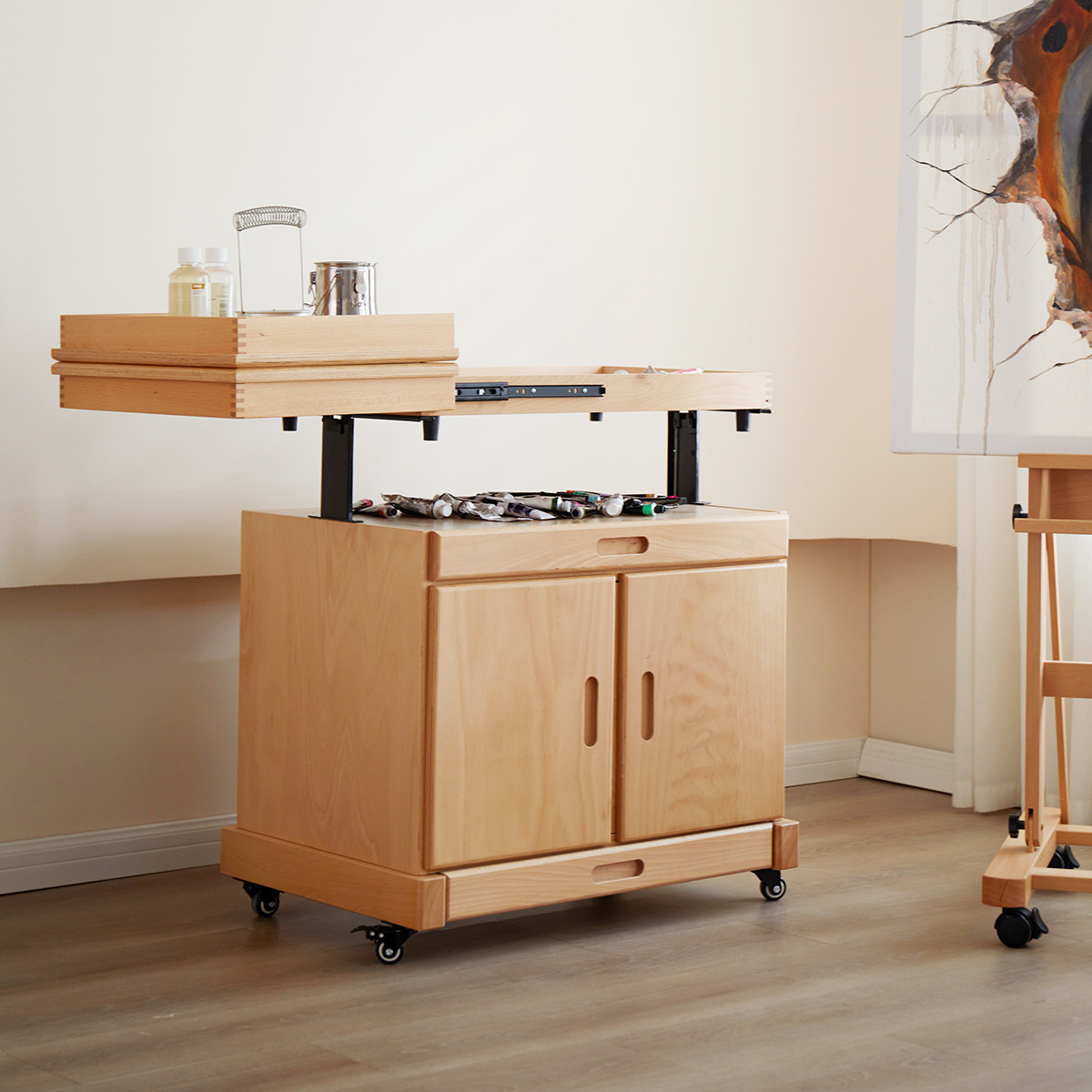 多機能ショーケース収納棚引き出し型油絵工具車美術多機能収納移動式調色車