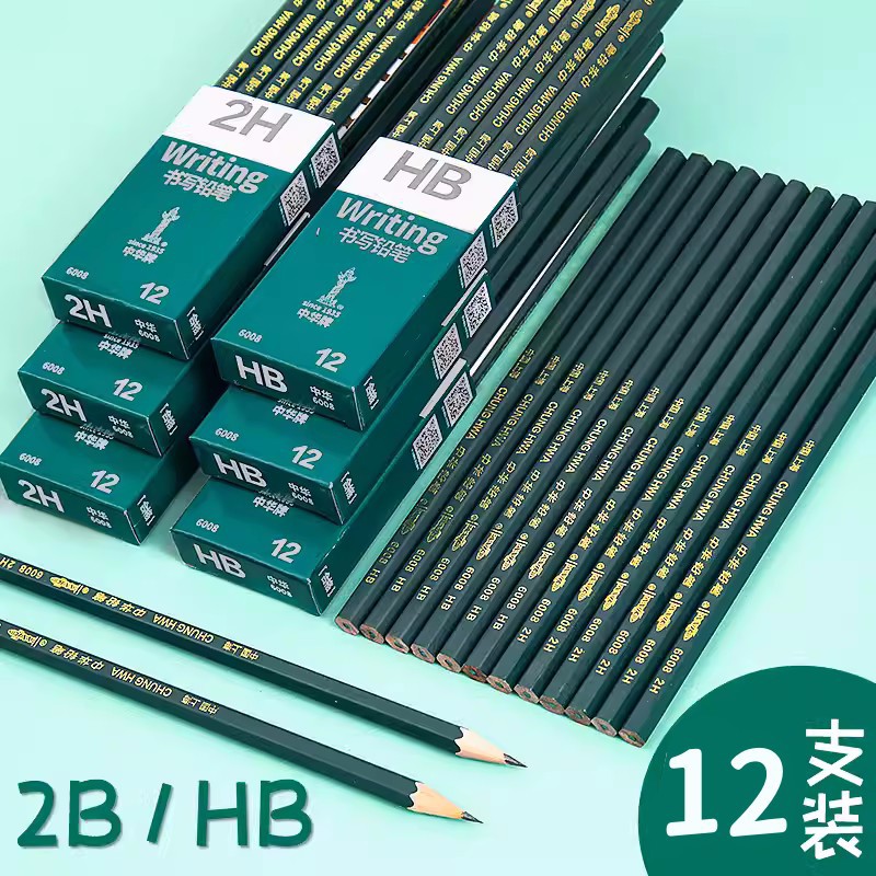 中華牌鉛筆6008天然木六角棒HBスケッチ鉛筆小学生用2H試験専用鉛筆