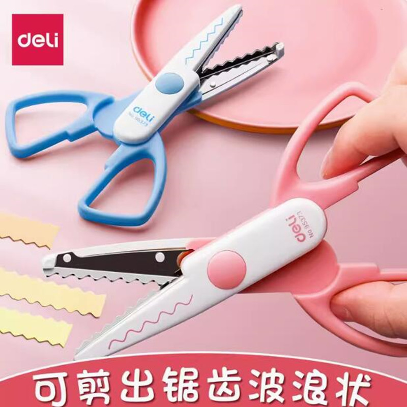 得力95373レースはさみ子供手作り花柄はさみ小学生切り紙ナイフ波はさみ幼稚園