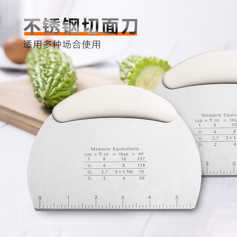 工場現物半円形牛ザル糖片面切断刀ステンレスの目盛り付き小麦粉生地スクレーパー