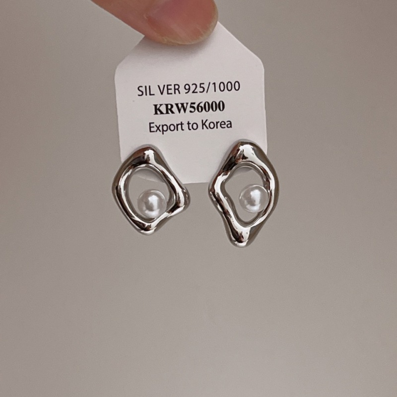 新しい非対称幾何学模様のパールイヤリング、ニッチなデザイン、シンプルで多用途なイヤリング、高級感のあるイヤリング
