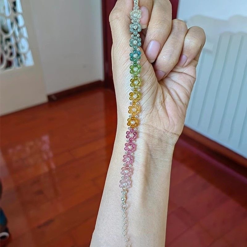 「モネの庭」ドーパミンカラーフラワービーズブレスレット絶妙な夏のハンドジュエリー女性への誕生日プレゼント
