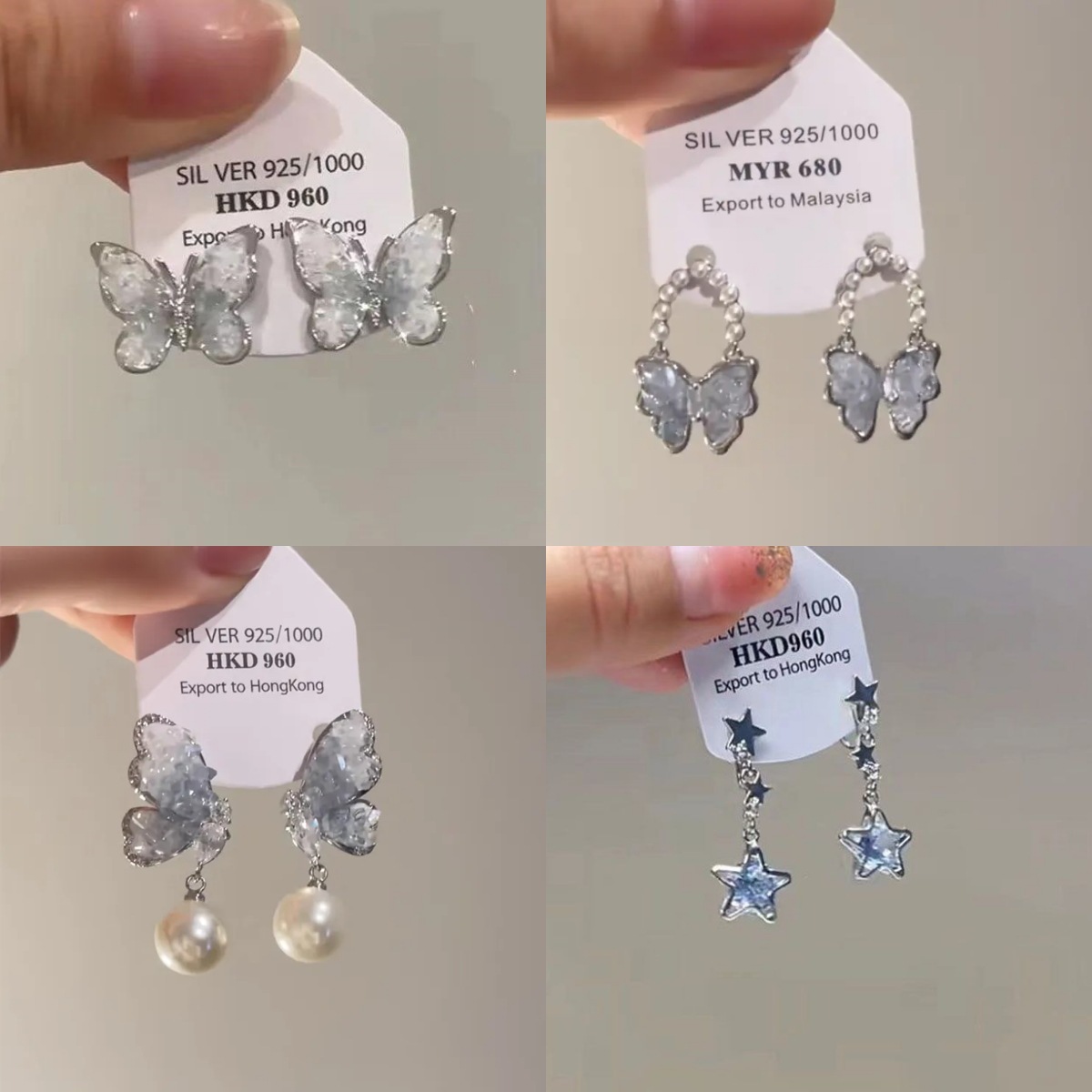 ひらひらと踊ります高級感軽豪華気質水晶蝶ピアス2023新夏精致小衆イヤリング女