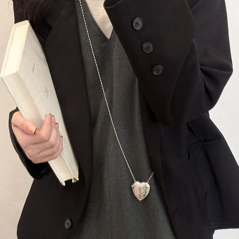 韓系愛の包みのネックレスの女性の大衆の設計の高級感の斜め掛けのチェーンの秋冬の復古の長い金の桃の心のセーターのチェーン