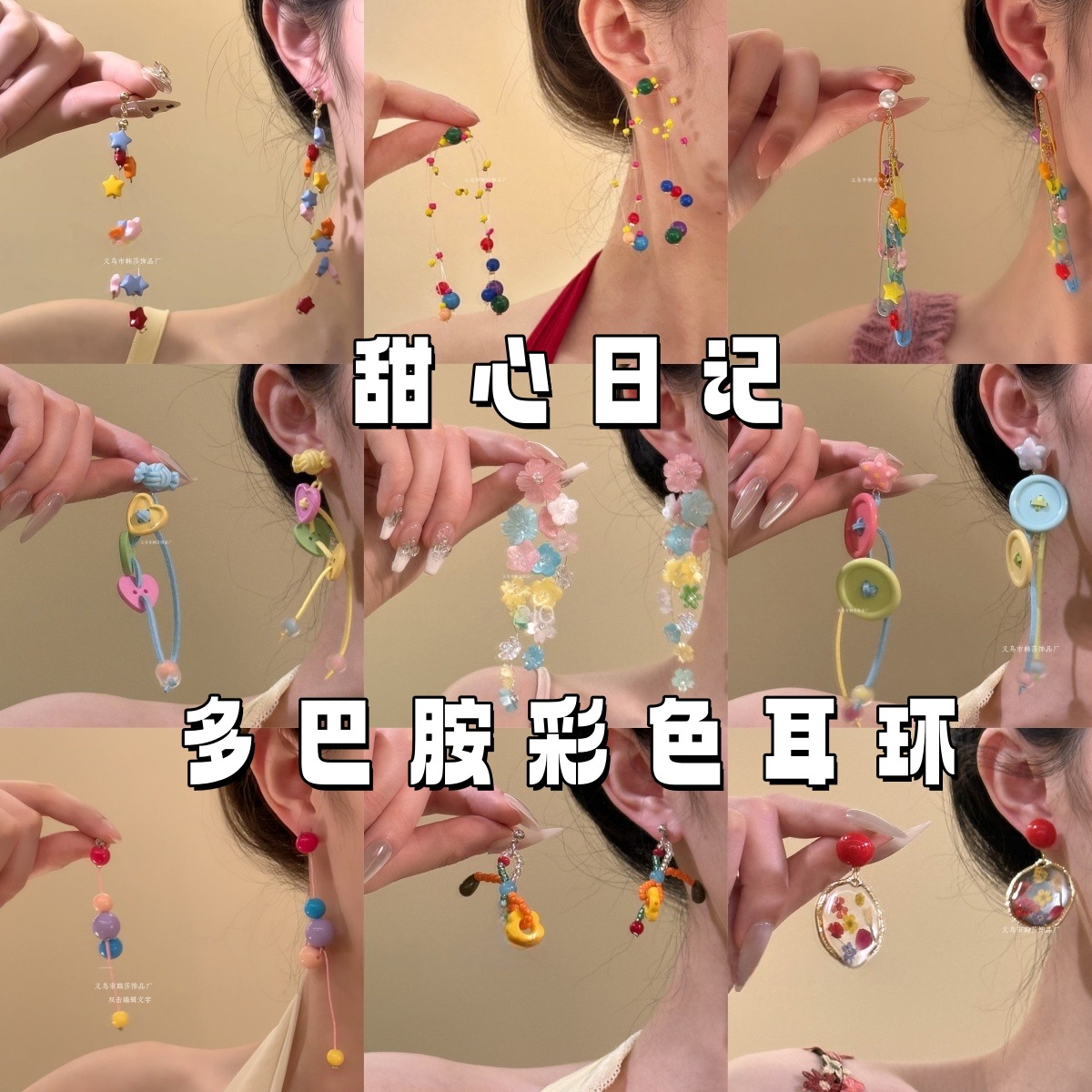 【童趣味ケーキ】大衆デザイン高級感カラーかわいい風瑠璃ビーズイヤリング女