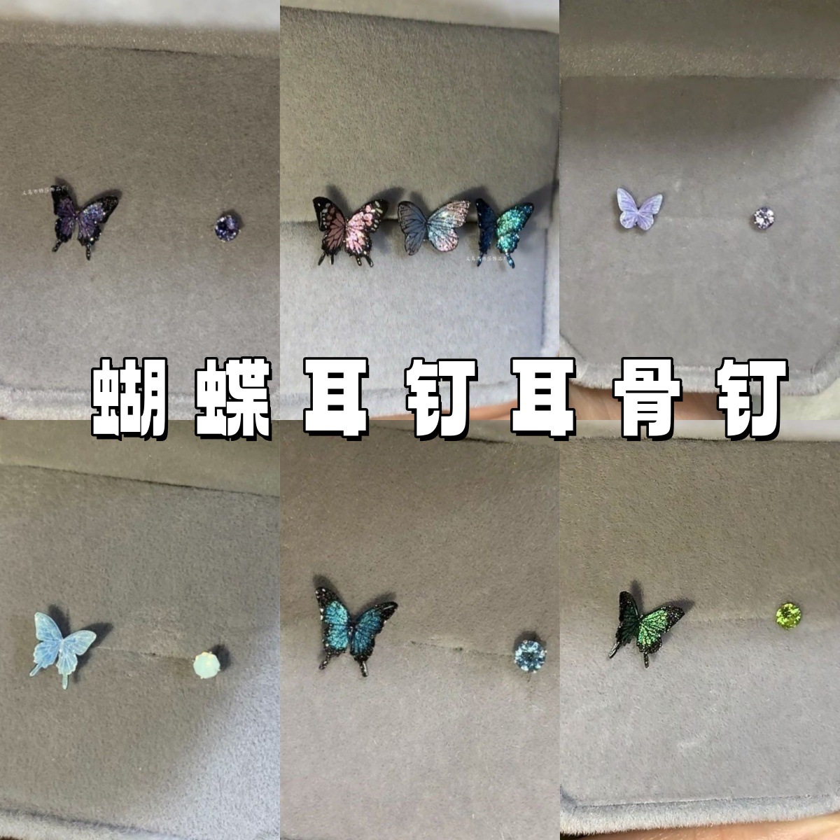 永夜藍蝶 ~ 青蝶ピアス2025新型耳骨釘小型ミニイヤリング養耳飾り女