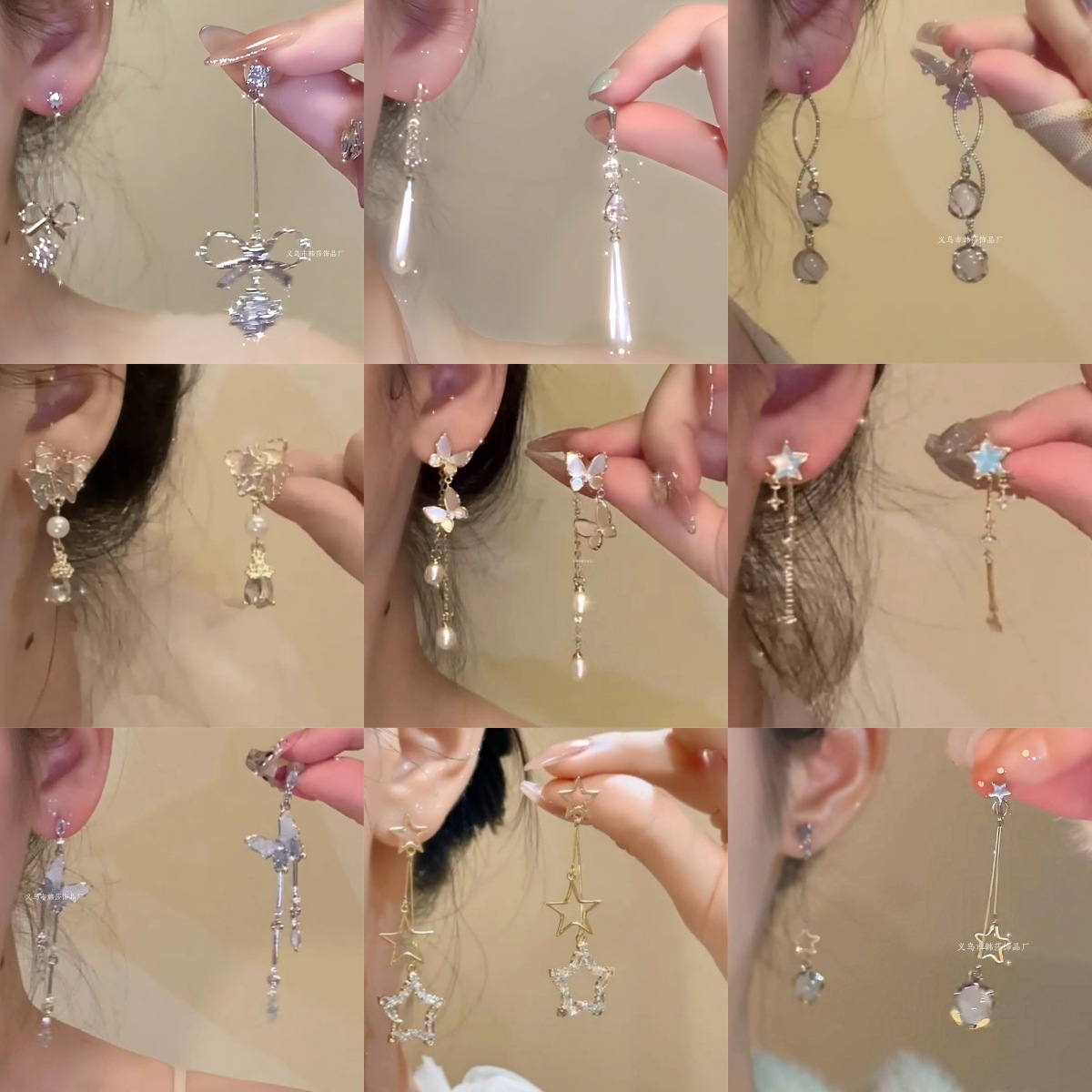 2025 春と夏の新蝶真珠タッセルイヤリングシェル蝶ロングニッチデザインライト高級イヤリング女性のための
