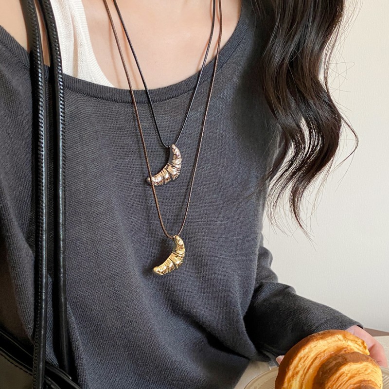 韓国系のきわめてシンプルな牛の角は黒い皮の縄のネックレスの女性の2024の新型の文芸の気質の長いタイプの首の毛の服のチェーンを包んで飾ります。