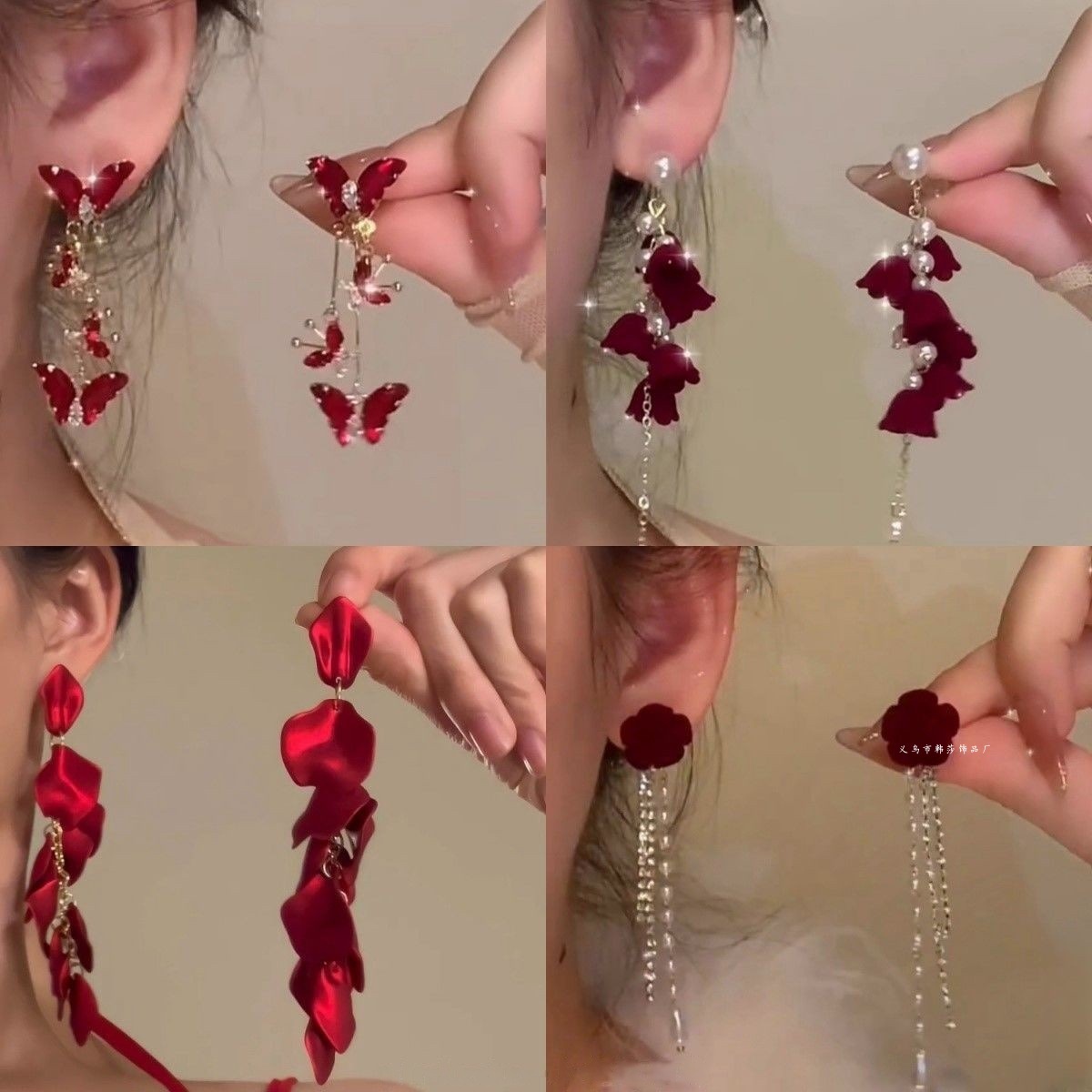 血色の霊蝶の清冷感の赤いジルコンの蝶の耳は新型のファッションの高級感を挟みます。