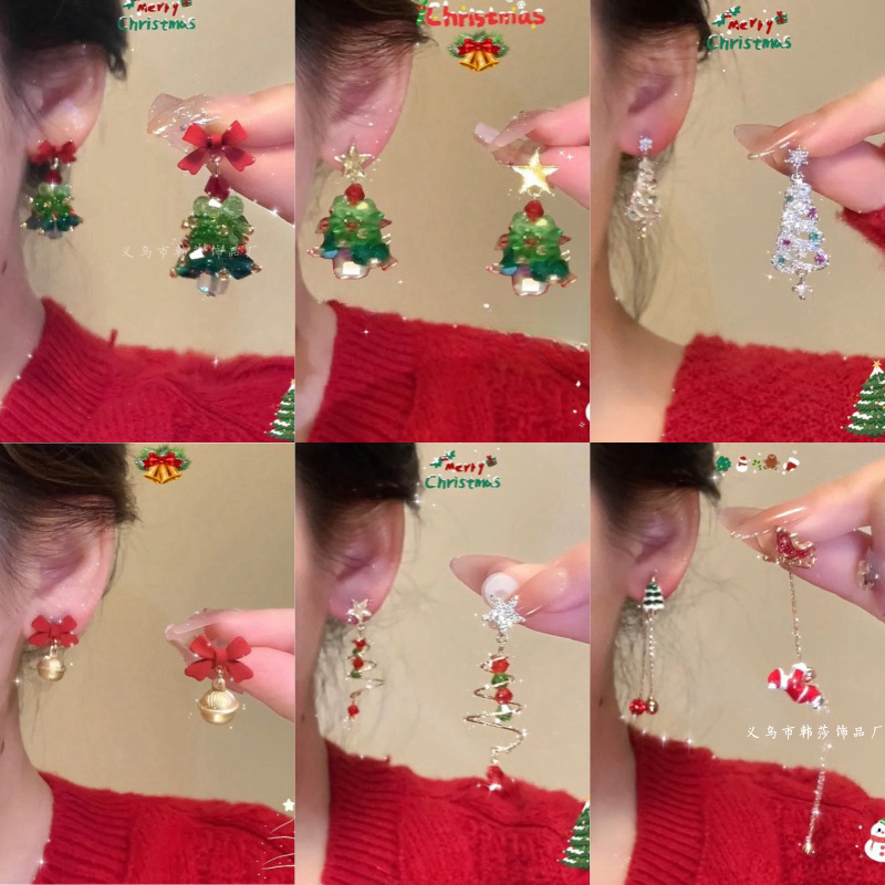 クリスマスが来た! 雰囲気感クリスマスツリーイヤリング2025新型起爆高級感蝶ネクタイ鈴耳飾り潮