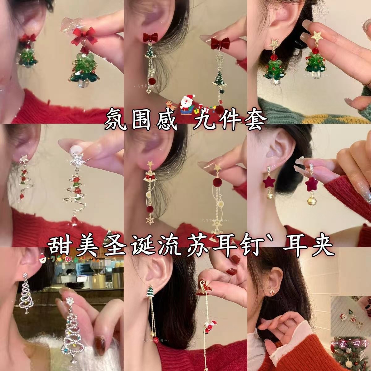 クリスマスシリーズ ~ 雰囲気感クリスマスツリー耳クリップ2024新型爆金高級感星耳ペンダント耳飾りピアス
