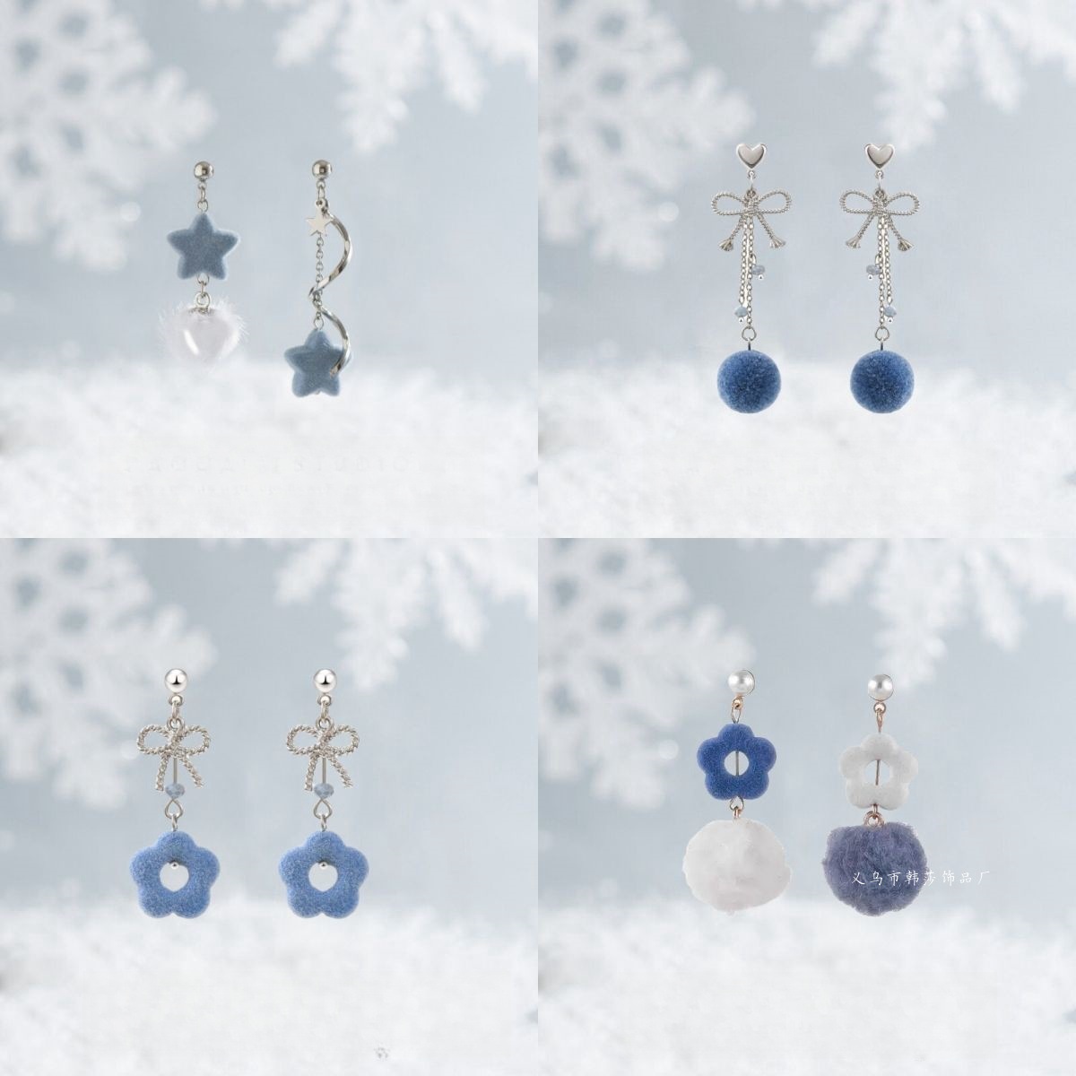 氷の雪の中 ~ 2024年の非対称のスモッグの青い星のピアスは冬の甘い少女のイヤリングに適します。