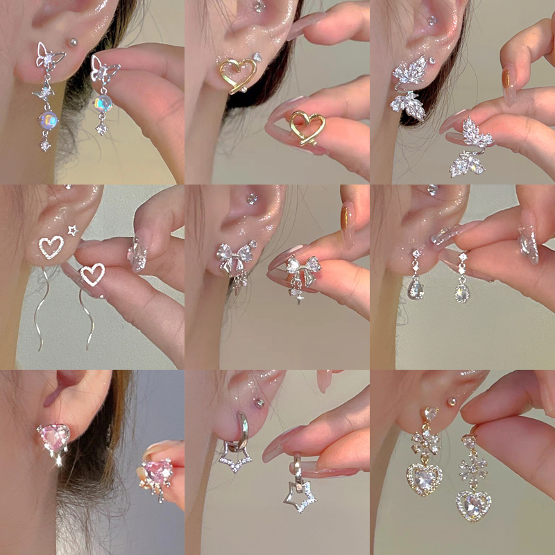 2025年新型星芒蝶ジルコンピアス女性大衆デザイン軽贅沢ファッション百合気質イヤリング耳飾り