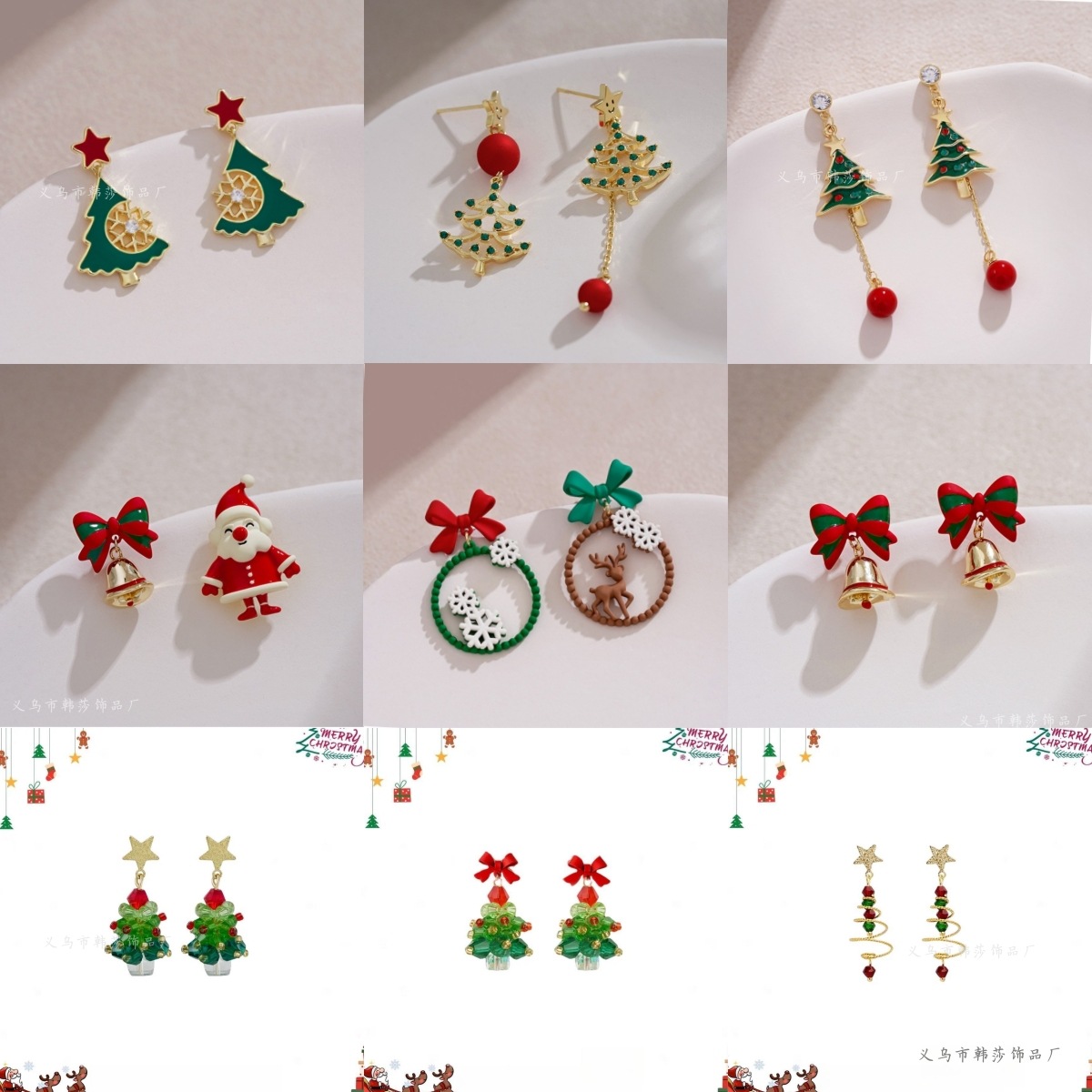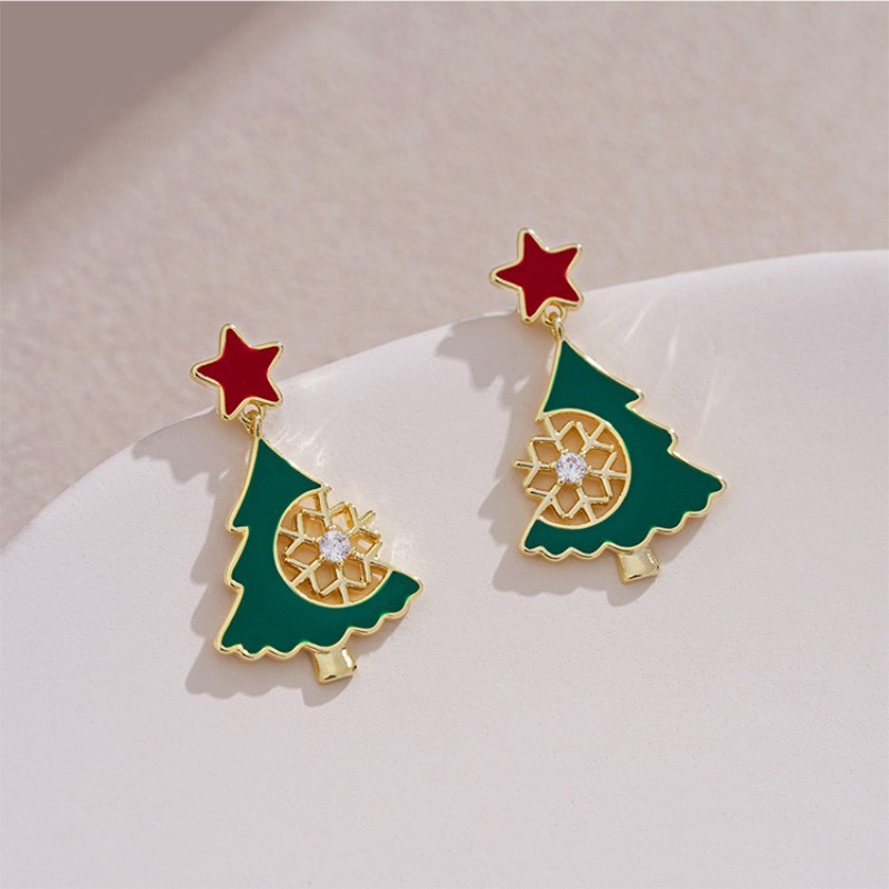 クリスマスツリーのピアスの雰囲気感クリスマスのイヤリングのデザイン感少女のかわいい短い雪花のイヤリング2024年の潮